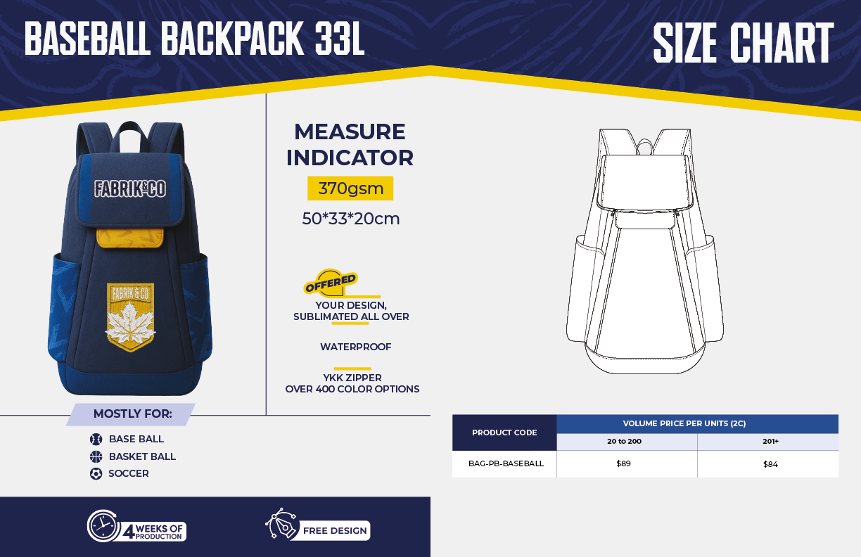 Baseball backpack 33L