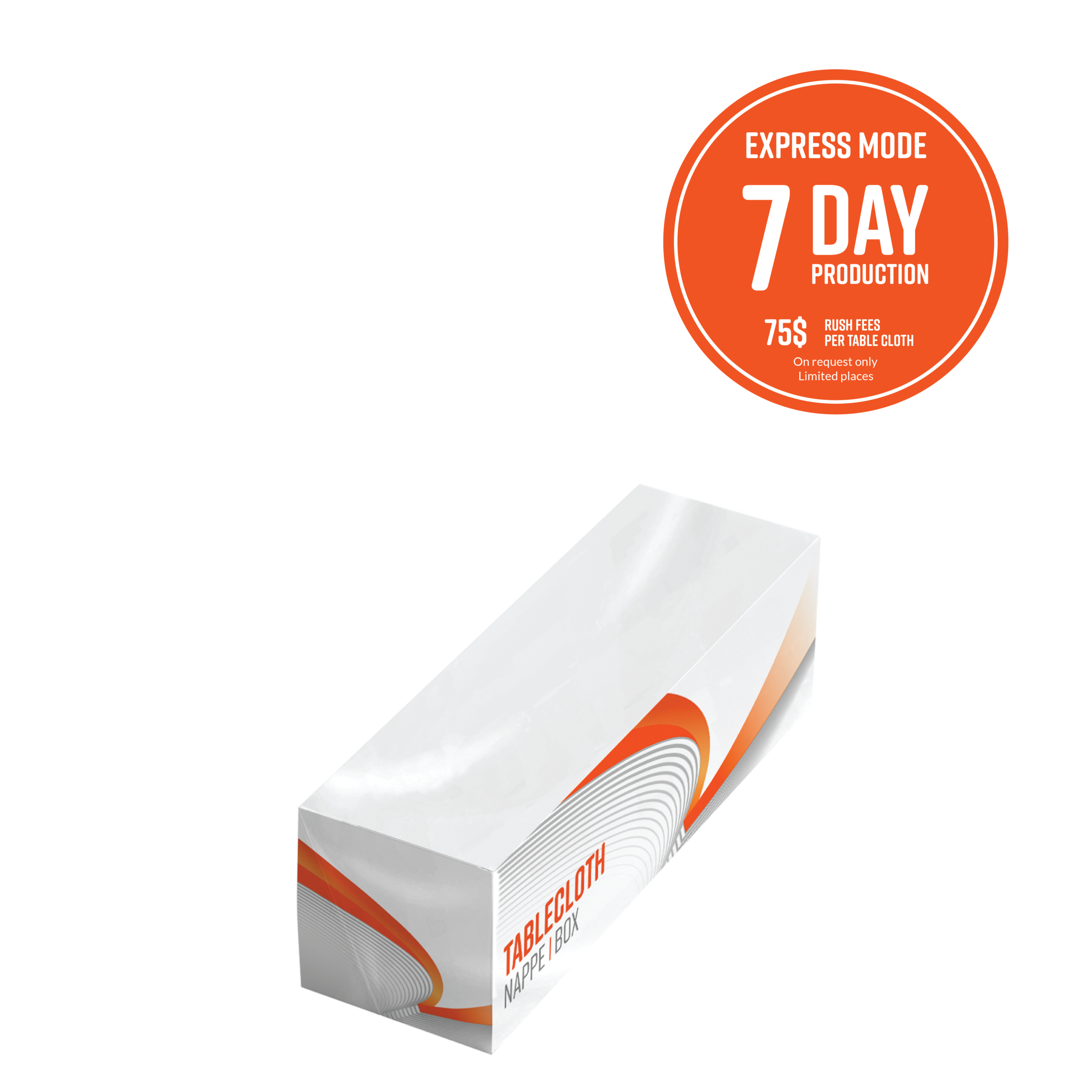 Express mode 7-day production time* : $75 extra rush fee PER tablecloth
