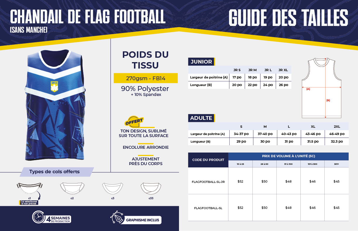 Chandail de flag football (Sans Manche) – Adulte
