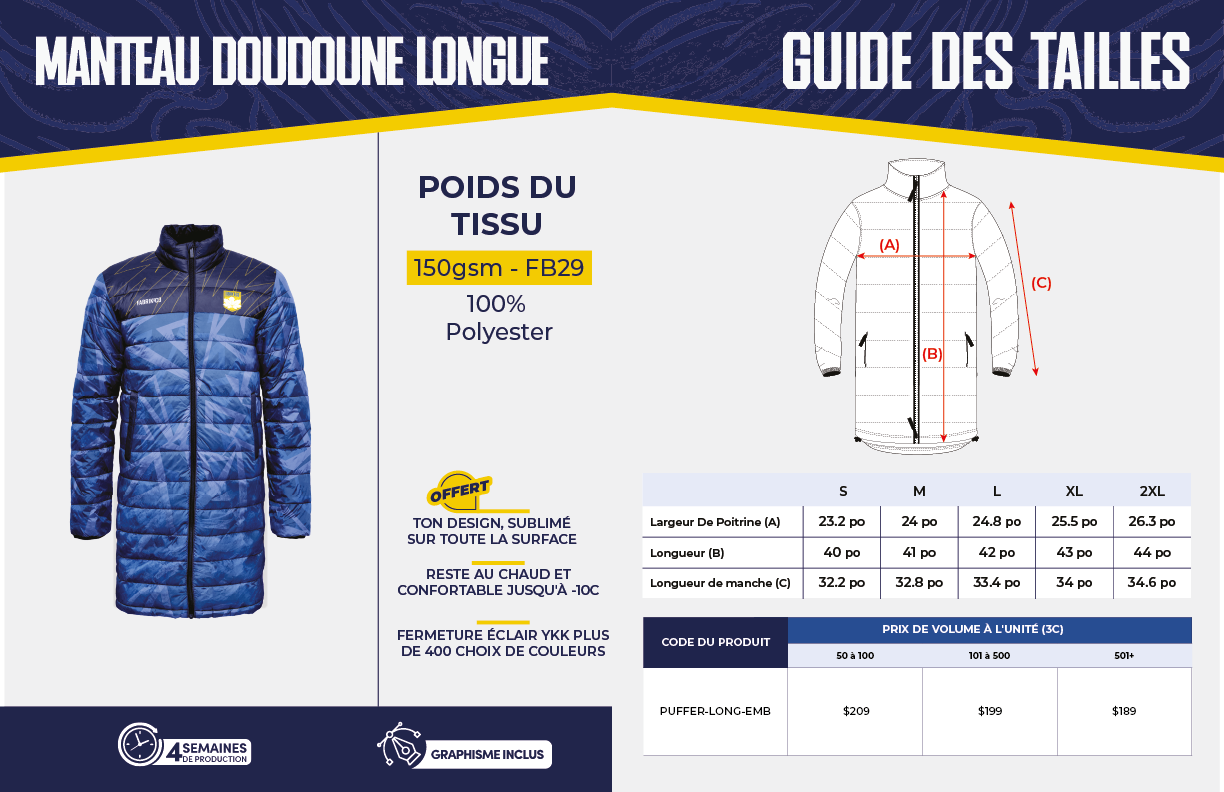 Les prix sont affichés avant taxes, celles-ci seront calculées au moment du paiement. Les prix affichés par le calculateur sont fournis à titre indicatif uniquement. Ils peuvent comporter des erreurs ou être modifiés sans préavis. Le prix réel, tenant compte des spécifications et demandes du client, sera confirmé par ta chargée de compte lors de la validation de la commande.